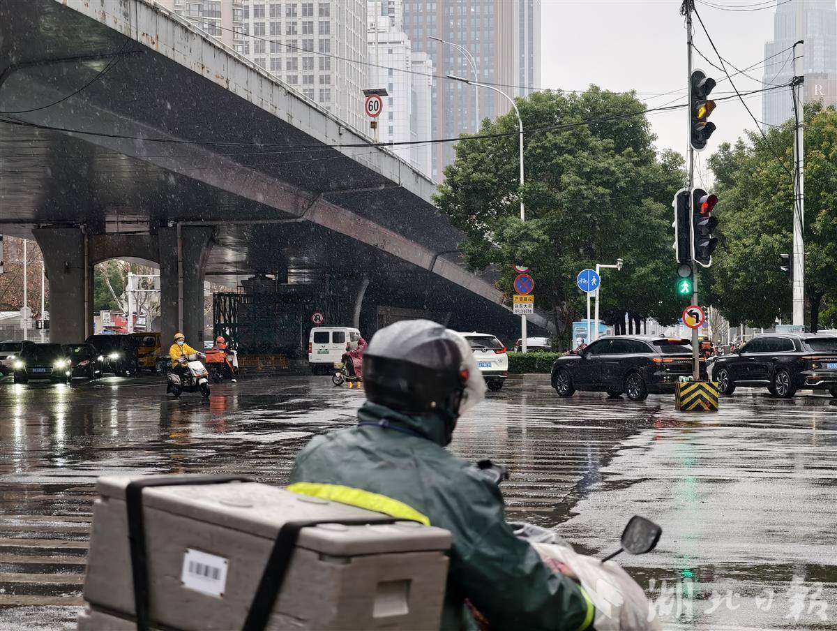 湖北日报讯(记者张竞恒)1月19日上午开始,武汉市区下起了雨,并逐渐增大。中午11时40分左右,记者在洪山区汪家墩附近看到,雨势已到中雨,街上行人步履匆匆,寒风将伞吹得左右摇晃。当日上午9时,武汉正式启动低温雨雪冰冻灾害IV级应急响应,并发布《以雪为令齐发力 同心护路暖江城——致全体武汉市民的扫雪除冰倡议书》。