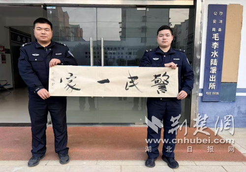 荆楚网(湖北日报网)讯(通讯员 姚薇 刘璠)近日,沙洋县公安局毛李水陆派出所收到一份特殊的“礼物”—— 河南南阳李先生寄来的“警民一家”书法作品和感谢信,字里行间满含对民警危急时刻伸出援手的诚挚谢意。