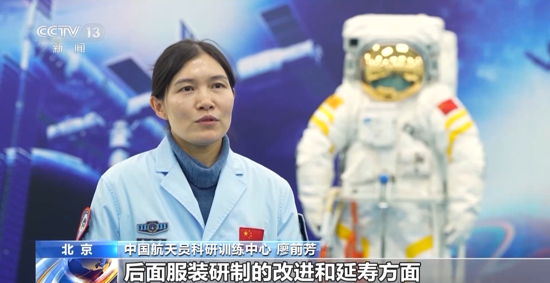 中国航天员科研训练中心 廖前芳:我们可能还会针对后面服装研制的改进和延寿方面,做相关的实验和研究,为后续服装更好保证航天员出舱活动提供数据。
