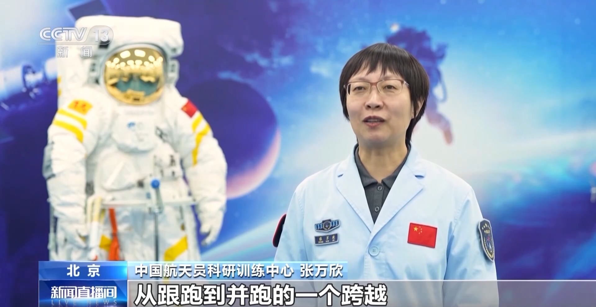 中国航天员科研训练中心 张万欣:目前我国的航天服技术在国际上已经实现了从跟跑到并跑的跨越。第一批次的舱外服在轨近4年半,在功效保障方面灵活高效,已经有效支撑了46个人次出舱、舱外作业的任务。实现了等容增效,保障了单次工作时长显著提升,最长的一次出舱活动已经超过了9个小时,成为国际上的一个纪录。建立了舱外服在轨健康状态评估的体系和延寿使用的标准,成功将一批的舱外服寿命从3年15次延长到了4年20次。