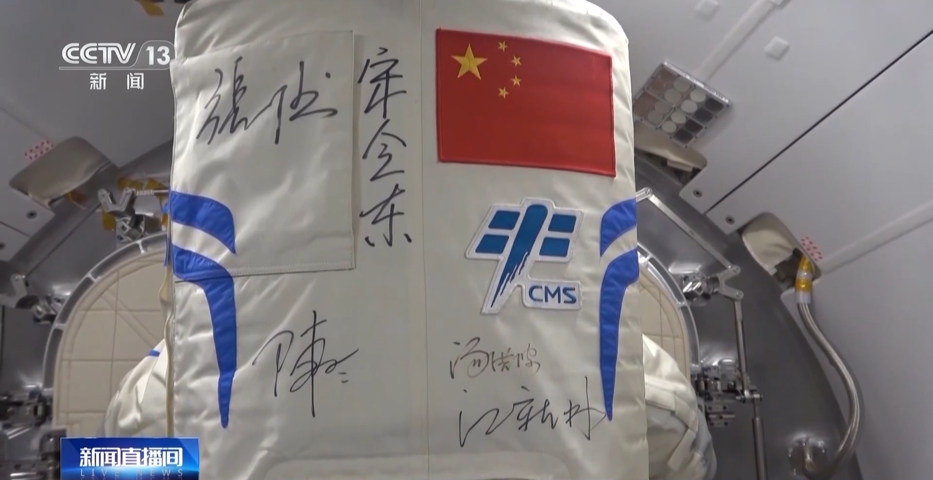 中国航天员科研训练中心 张万欣:飞行服B大家都看到了,它的背后有很多航天员的签名。它凝聚着航天人代代接续奋斗、自主创新的精神,同时它也见证着我们空间站建造的历程。我认为它不仅仅是我们设计团队的骄傲,也是载人航天的骄傲,更是我们中国人的骄傲。我坚信它会在适当的时机与大家见面的。