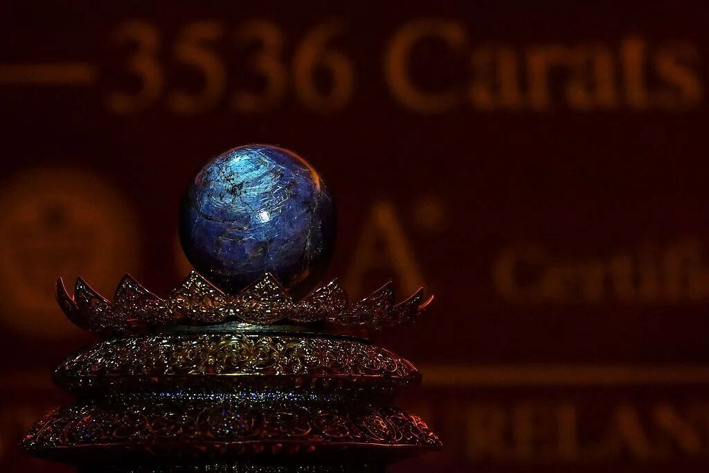 一枚3563克拉的紫星蓝宝石日前在斯里兰卡首都科伦坡公开展示,重量据称为同类宝石之最。