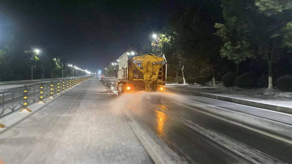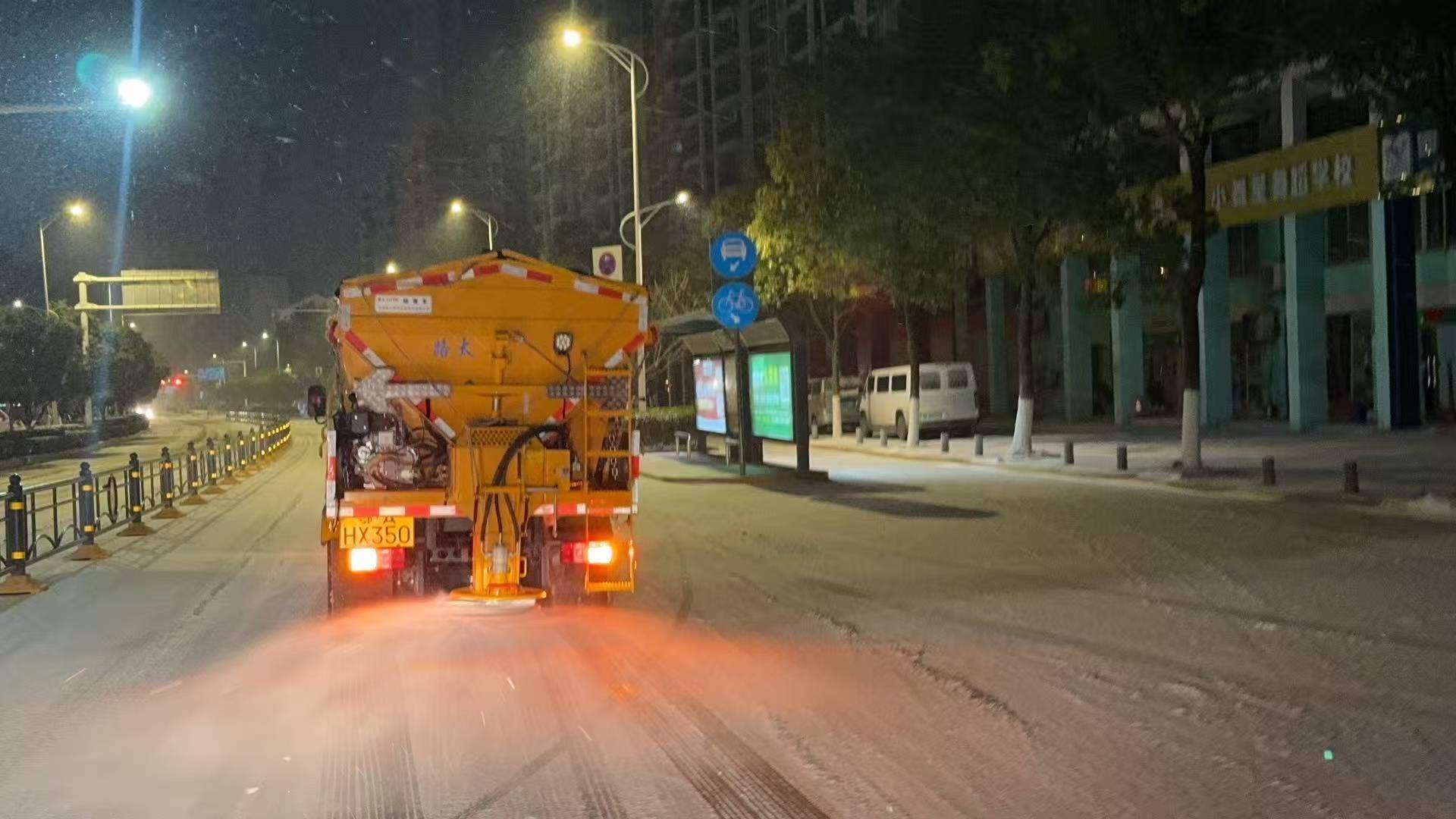 湖北日报讯(记者张竞恒、通讯员严娟娟)1月19日夜间,武汉市蔡甸区迎来降雪,路面迅速出现积雪结冰迹象,给市民出行带来安全隐患。蔡甸区第一时间启动融雪防冻应急预案,环卫部门连夜调度机械作业队伍奔赴一线,全区全面打响融雪防冻处置攻坚战。