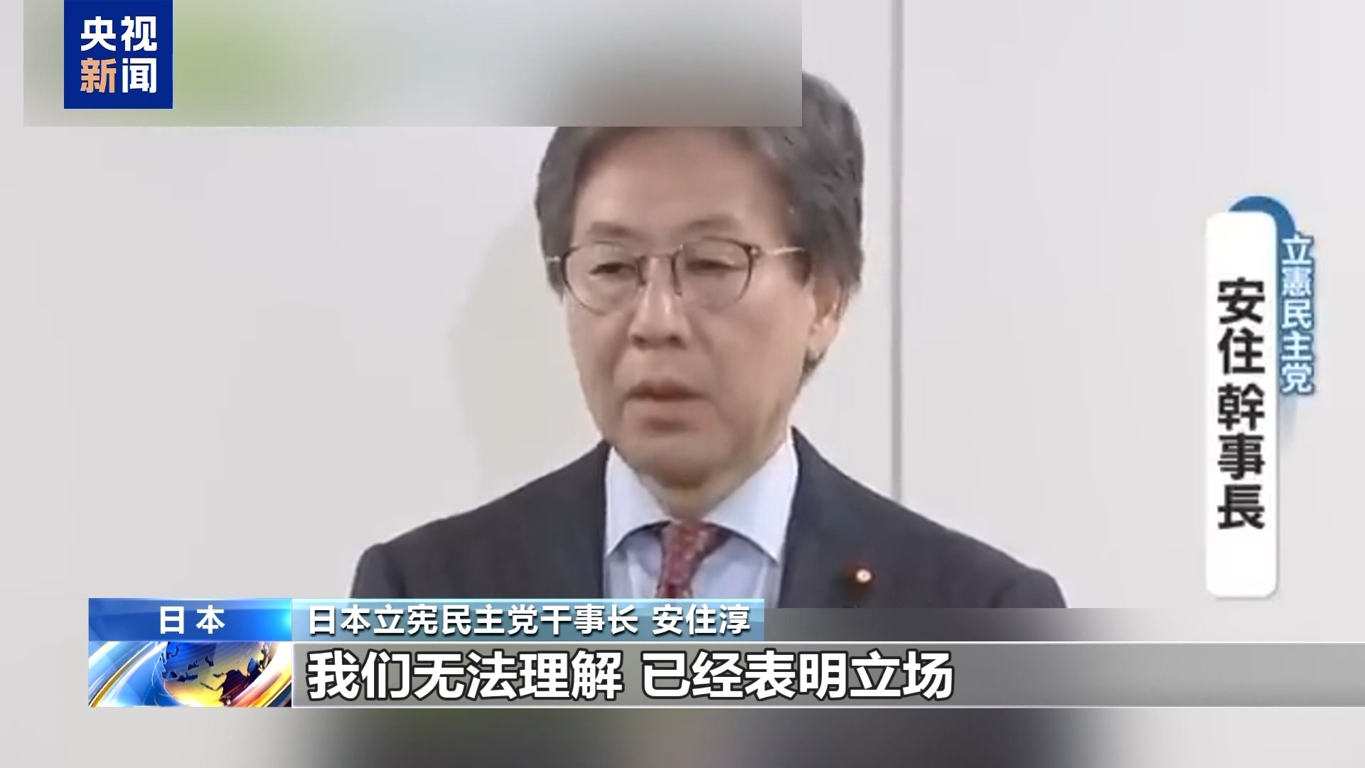日本立宪民主党干事长 安住淳:我们无法理解,已经表明立场。坦白说,这是一次毫无道理的解散。