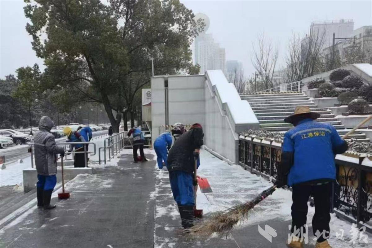 同时,武汉三地江滩管理齐出动,保障出行安全。为应对雨雪天气带来的出行挑战,武汉文旅集团旗下武旅股份江滩公司迅速联动汉口、武昌、汉阳等江滩管理部,全面开展园区安全保障工作。1月20日早上6点前,各闸口管理人员在开园前及时清除积雪和结冰,确保行人通行安全。同时,在关键路段及易滑区域铺设草垫、麻袋等防滑物资,有效提升路面摩擦力,降低滑倒风险。安保人员还在重点区域设置提示牌,并通过小喇叭循环播放安全提醒,增强游客安全意识。