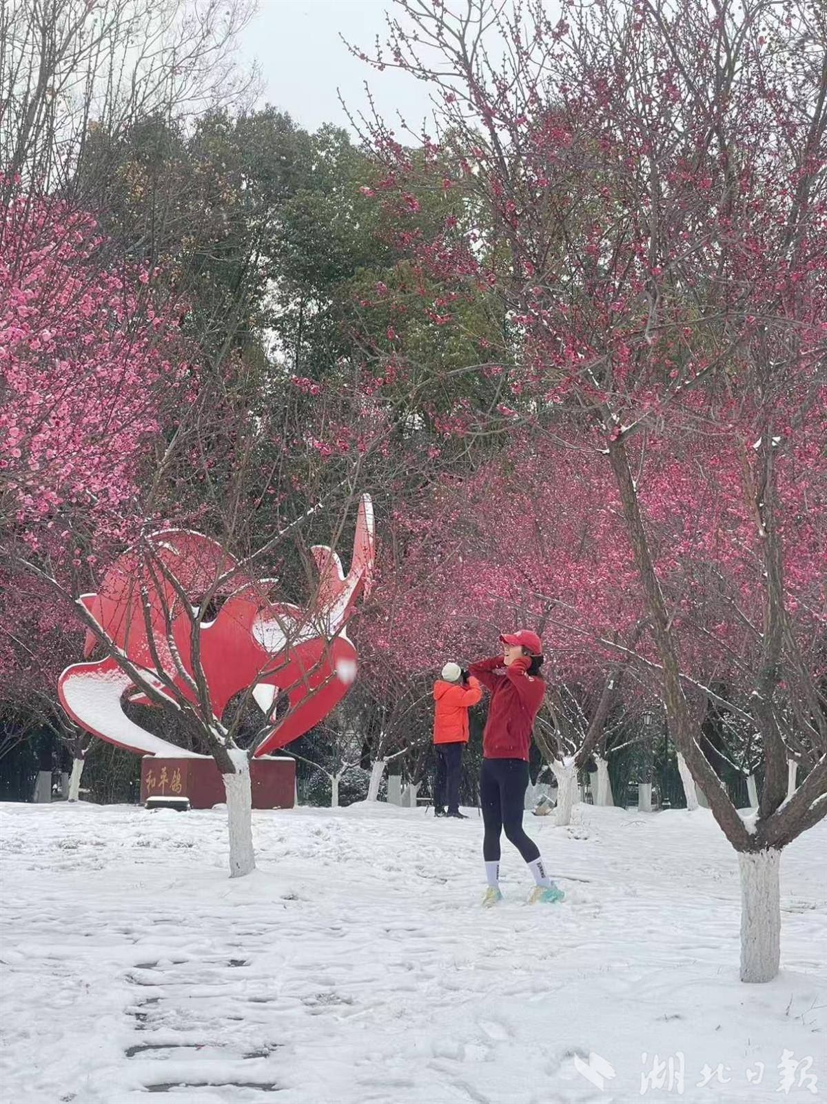 湖北日报讯(记者冯袁玥、通讯员吴秀芬)1月20日,历经一夜降雪,武汉江滩已经被“刷白”。然而,寒冷的气温并没有减弱游客出行的热情,早晨9时,不少市民游客纷纷走出家门,前往武汉江滩和平鸽广场,欣赏雪中盛放的梅花。