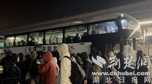 据了解,转运工作已有序展开。首批约150名旅客在交通部门的引导下,顺利登上安排好的转运大巴,安全抵达市区各指定点。根据统一调度,下一班转运车辆预计于当日23点50分抵达钟祥南站,可接驳旅客约180人。