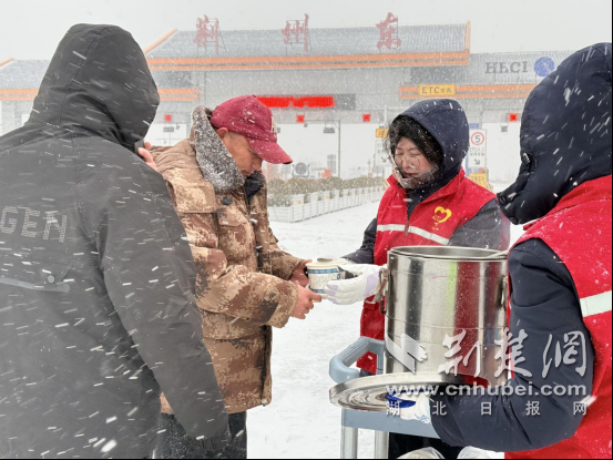荆州东管理所收费员站口管制给司乘送早餐。