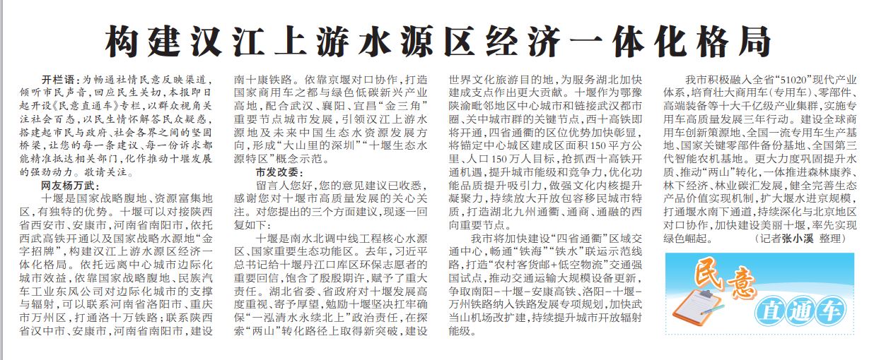 在《十堰日报》《十堰晚报》、秦楚网、十堰头条APP、十堰晚报及秦楚网微信公众号等多个媒体平台开辟专栏,对群众关注度高、职能部门及时回复解决的热点问题等二次宣发,持续向社会传递职能部门对民生问题的重视和回应,让群众从一个个具体问题的解决中切实感受到党委政府的温情。
