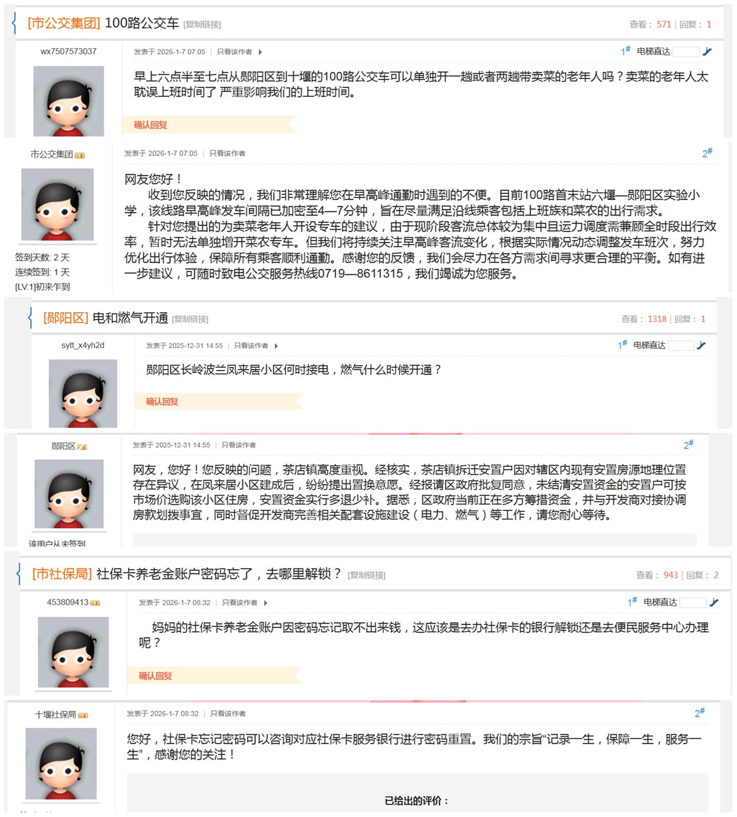 自2017年栏目开通以来,秦楚网认真落实市委主要领导“不走形式,增强市民获得感”的批示意见,累计近15万条网帖激活了党委政府与群众间的良性互动,51家入驻单位平均回复率在90%以上、近半回复率达100%。一大批投诉得到处置,一大批建议获得采纳,一大批“小事”得到解决,“民意直通车”栏目因此被十堰广大网友称作党委政府和群众的“连心桥”。