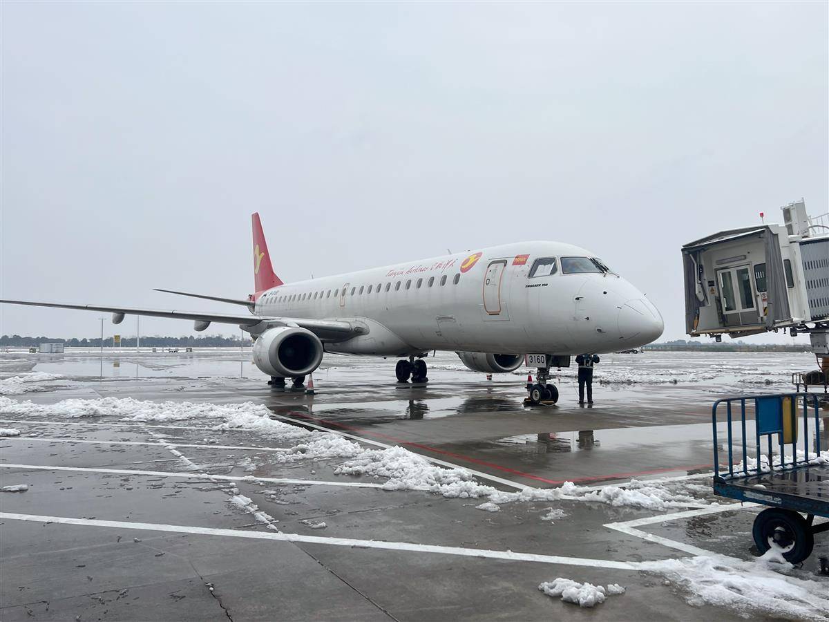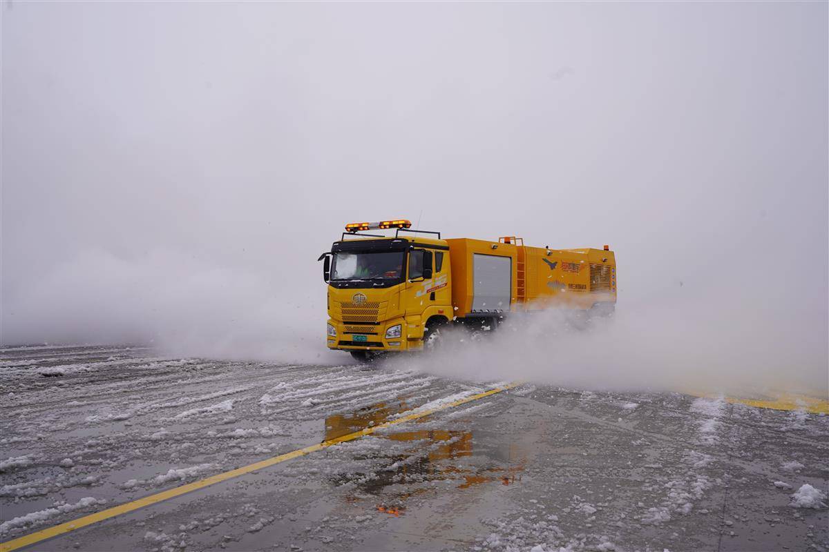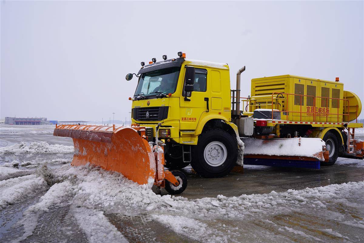 面对持续低温雨雪冰冻天气,三峡机场全力做好航班安全运行和旅客服务保障工作,调集除冰车、热吹车、除冰液撒布车、推雪车,组织工作人员连续作业,对跑道、滑行道、机坪以及路面交通进行除冰雪。