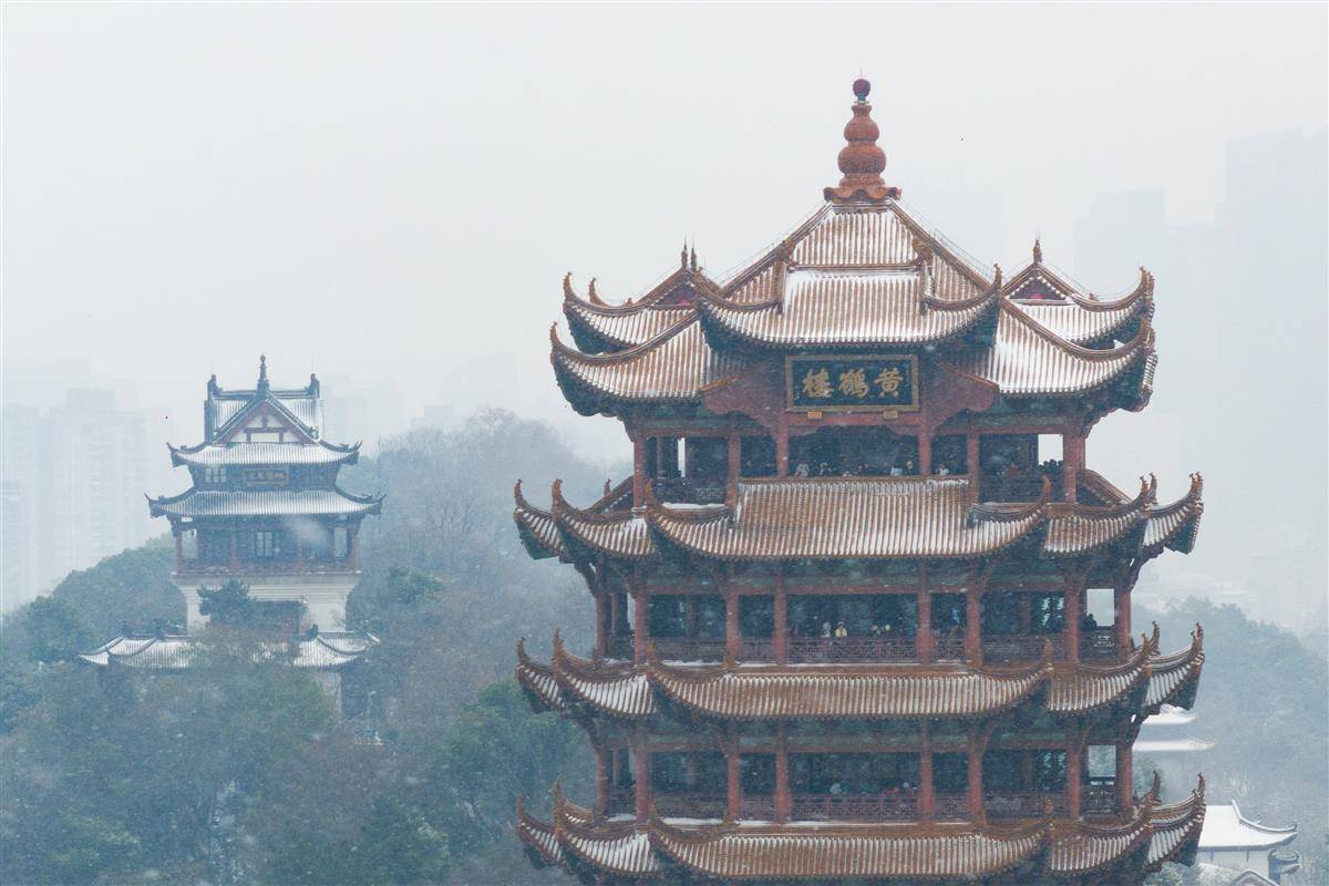 2026年1月20日,武汉普降大雪,武汉黄鹤楼与漫天飞雪遥相呼应,宛如一幅山水画,格外浪漫。(湖北日报全媒记者 何宇欣 摄)