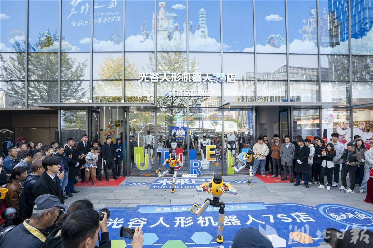 机器人和机器狗在机器人7S店门前表演。 (湖北日报全媒记者 魏铼 摄)