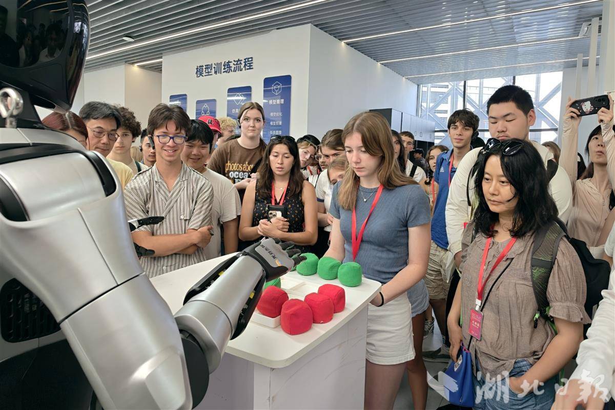 2025年7月29日,近百名美国“飞虎队”青少年夏令营成员走进湖北人形机器人创新中心。(湖北日报全媒记者 陈少哲 摄)
