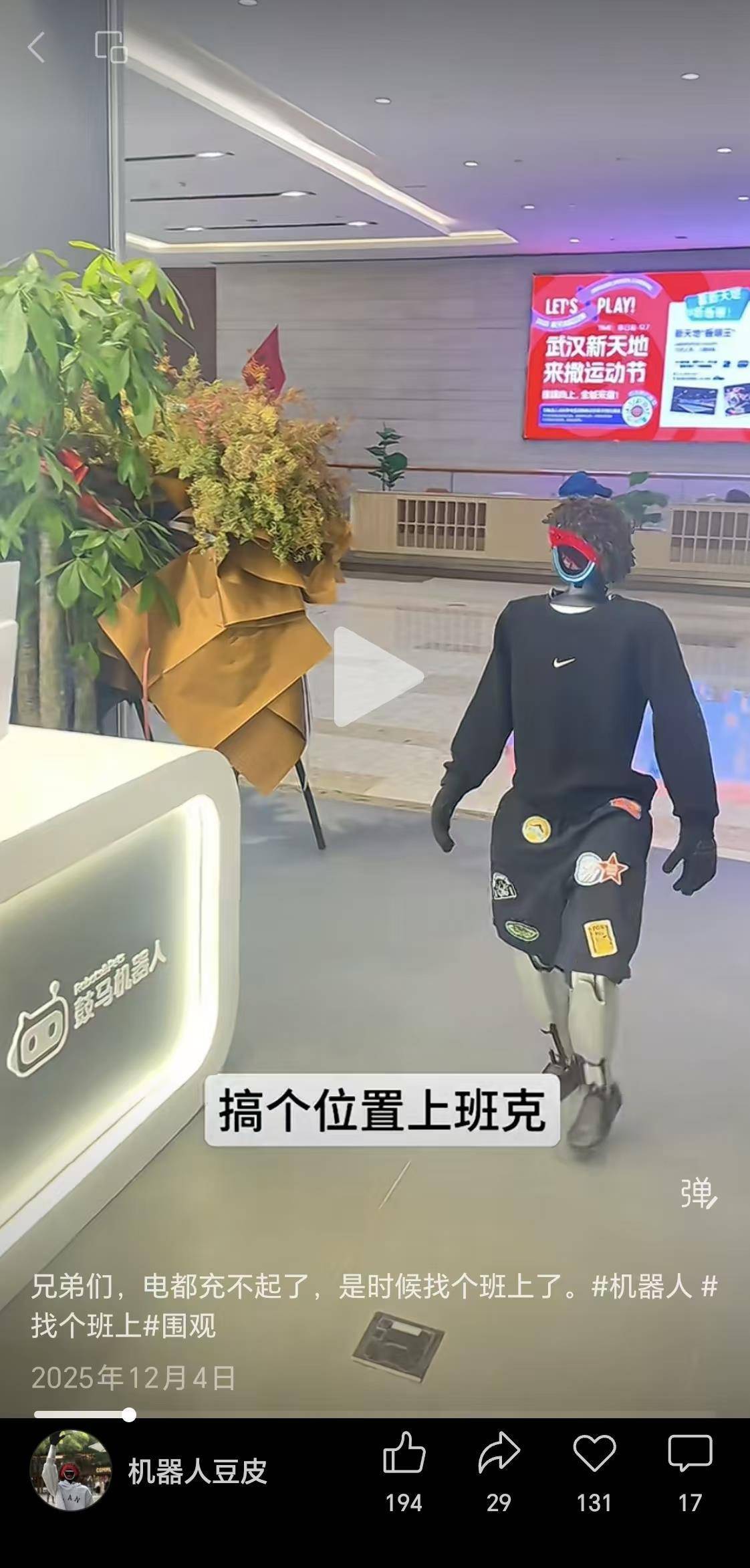 人形机器人“豆皮”在武汉本地社交媒体平台上小有名气。