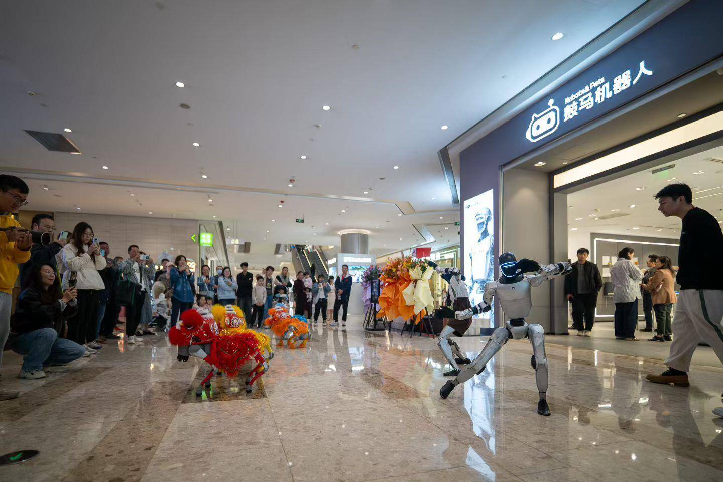 1月16日,正式开业一个多月后,门店副总经理冯龙的手机还是没消停过,“最近年会、开业等活动不断,‘豆皮’档期排满,店里3台宇树G1机器人都被借走了,几台机器狗也时不时得配合出门演出。”