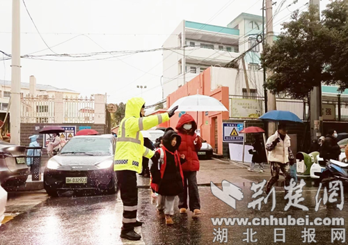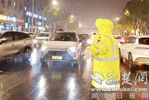 荆楚网(湖北日报网)讯(通讯员 赵继、王俊)受强寒潮天气影响,1月19日,钟祥市迎来雨雪冰冻天气,对市民出行造成较大影响。为应对恶劣天气挑战,钟祥市公安交管大队迅速启动应急预案,精准聚焦学校放学与晚高峰通行两大关键时段,周密部署、多措并举,全力筑牢道路交通安全防线。