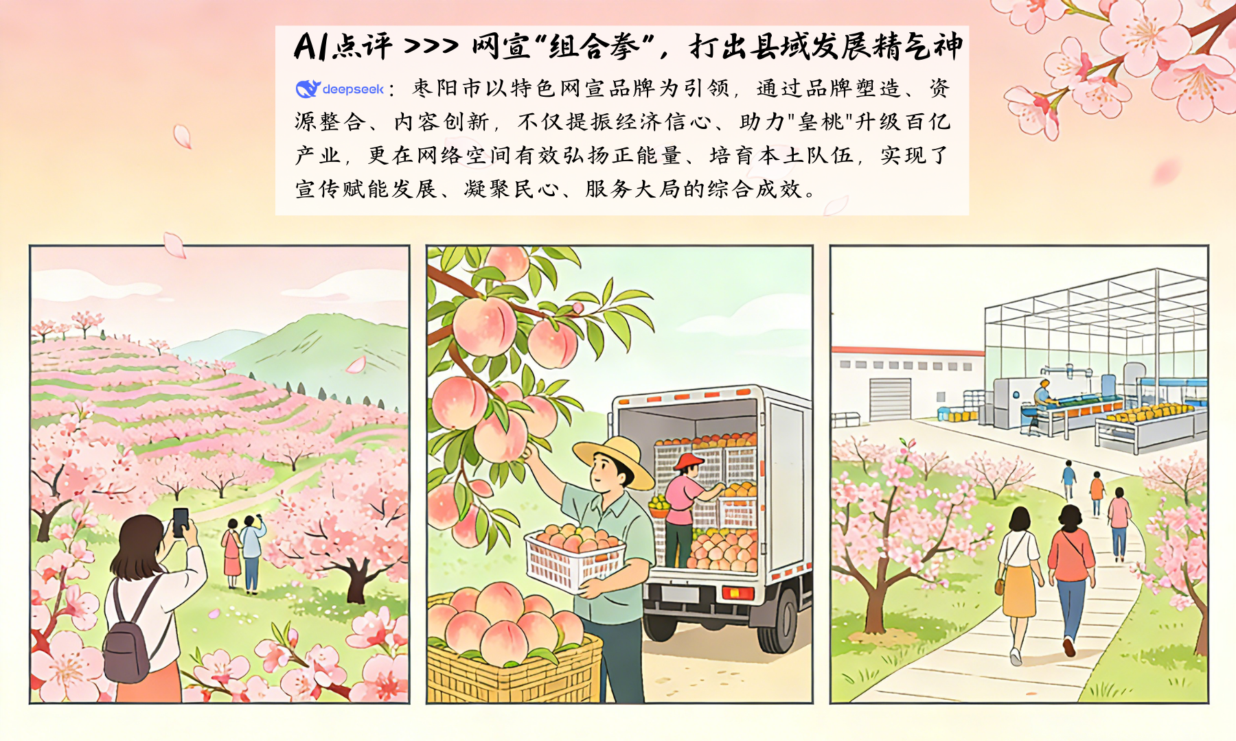 如今的枣阳,已形成“春赏花海、夏摘鲜桃、四季游览”的全链条业态,桃产业成为串联起农业、文化和旅游的核心纽带。