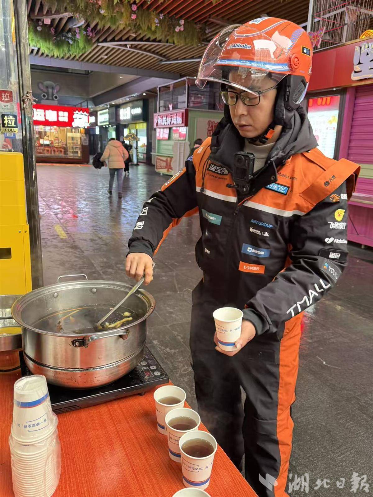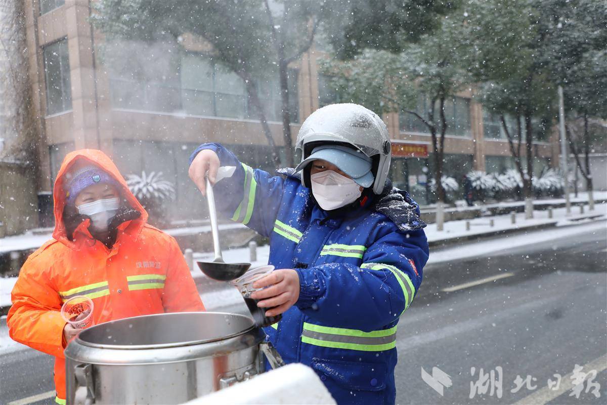 湖北日报讯(记者朱惠、通讯员肖赟、李思媛、向明荣)1月20日,在寒冷的风雪之中,武汉市汉阳区一杯杯热气腾腾的免费姜汤,为户外工作者带去冬日温暖。