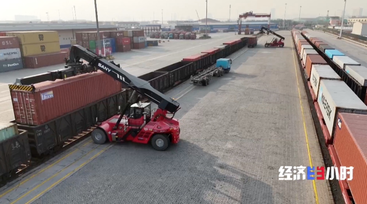 X9537班列从山西太原驶来,满载出口的光伏产品。“行字头”是海铁联运重点班列的标志,班列到站后,必须在3小时之内送至港区卸车线。随着海铁联运数量的快速增长,黄岛站2025年连续5次打破单日海铁联运集装箱装卸纪录,成为沿线最繁忙的铁路货运车站之一。