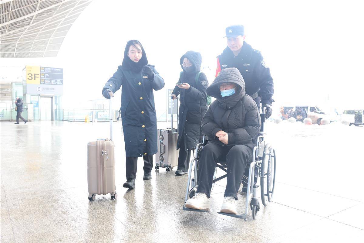 1月20日,武汉迎来2026年第一场雪。武汉铁路公安处武汉站派出所民警在低温和湿滑路面上坚守岗位,及时引导旅客有序通行。