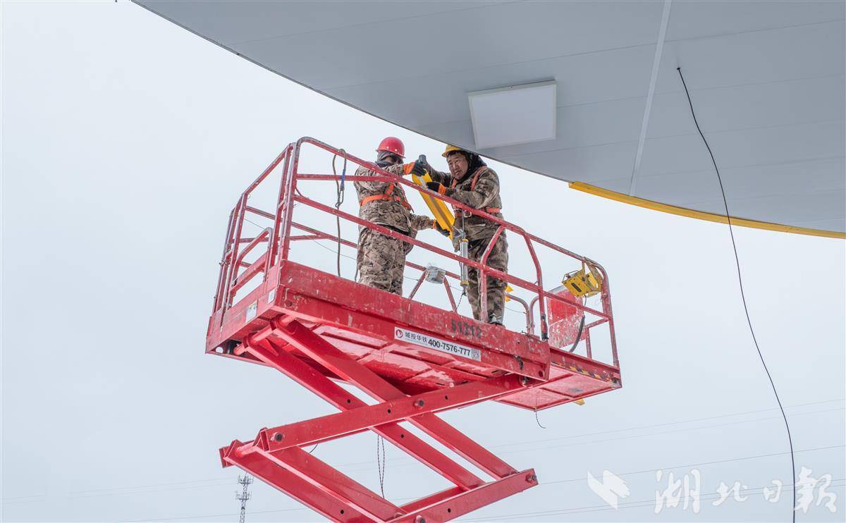 1月20日,武黄高速改扩建工程武昌鱼服务区,工作人员冒着严寒天气加紧施工。当日,风雪交加的武黄高速“四改八”改扩建工地依旧干劲十足,百余名建设者坚守岗位,冲刺这条“楚天第一路”改扩建工程早日建成通车。(湖北日报全媒记者 薛婷 戴辉 通讯员 王可 摄)
