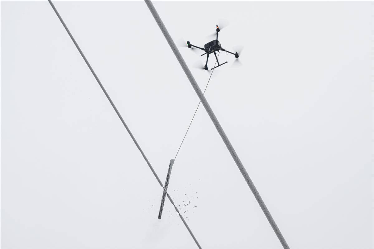 “遇到覆冰情况严重的路段,无人机是我们的‘好帮手’。”柴进一边调试无人机设备,一边向记者介绍。只见他熟练操控遥控器,无人机挂载着除冰棒缓缓升空,精准对准覆冰的输电导线轻轻撞击,冰层便顺着导线簌簌掉落。这种物理除冰方式,无需停电,能最大限度保障线路正常供电,还能在覆冰初期有效遏制冰层快速增厚,为电网平稳运行筑牢防线。
