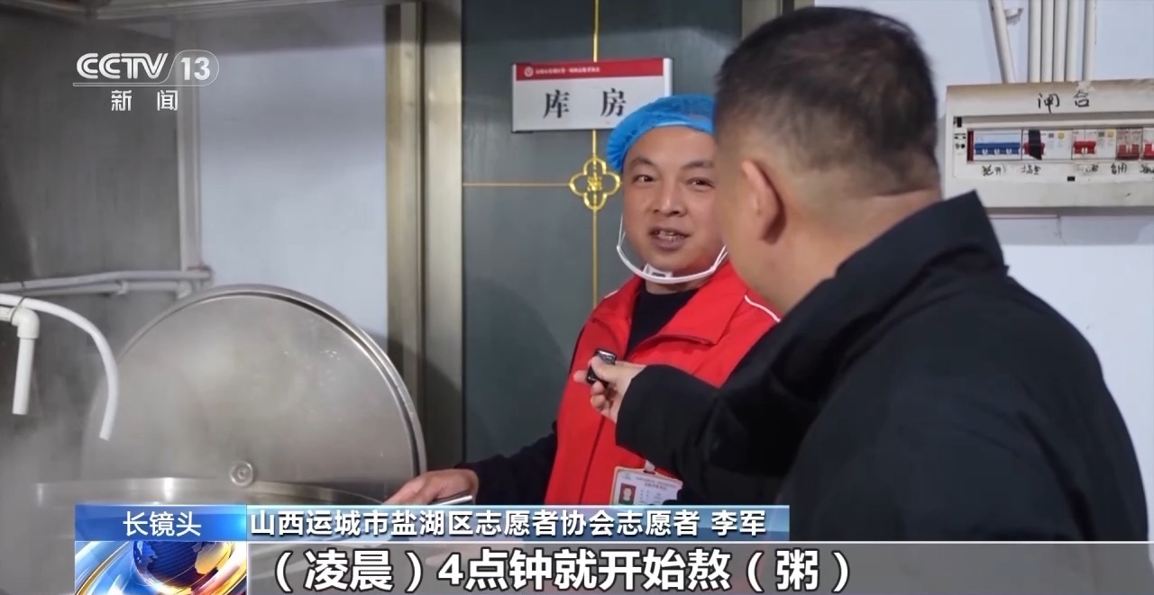 运城市盐湖区志愿者协会志愿者 李军:每天我们都是凌晨4点钟就开始熬粥,然后6点钟出锅。熬得时间长就香一点,让环卫工都吃舒服一点。