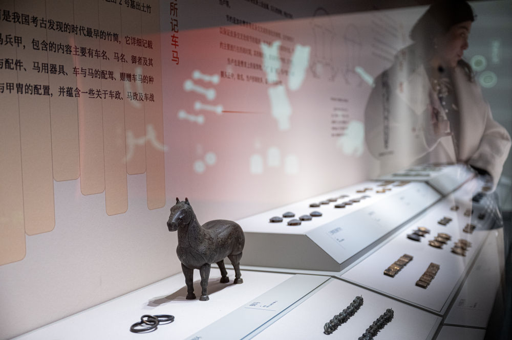 近日,“湖北出土先秦车马兵器”展在位于武汉的湖北省博物馆开展。该展览是省博新增的常设展,展出了湖北地区出土的先秦时期车马和兵器430余件,包括九连墩楚墓部分车马坑遗迹,复原展示了楚国的四车车阵,展览呈现了曾、楚等南土诸侯的历史、文化和科技面貌,展示了先秦时期绚丽多姿的荆楚文明。