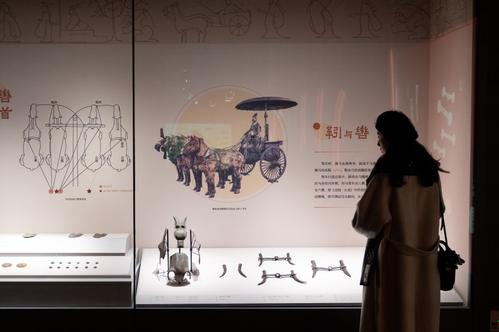 1月20日,参观者在“湖北出土先秦车马兵器”展上参观。 新华社记者 肖艺九 摄