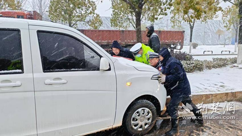 路面上的温情时刻也在不断上演。藏龙岛派出所民警王千升在出警途中看到一名骑电动车的市民滑倒,立即停车飞奔上前搀扶,仔细检查确认无碍后,耐心叮嘱:“电动车稳定性差,尽量步行更安全。”在积雪最深的国省道路段,民警们采取“铲雪撒盐 + 合力推车”模式,一次次弯腰推车的身影成为雪地里的动人风景。据统计,整个早高峰期间,江夏交警累计帮助80余辆被困车辆的司机推车。