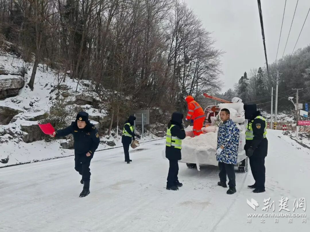 省高速公路路政执法九支队面对鄂西北10毫米降雪预警,启动Ⅲ级应急防御,投入43人次、19台执法车辆开展全覆盖巡查,累计巡查1671公里,撒布融雪剂456吨,保障辖区货车正常通行。