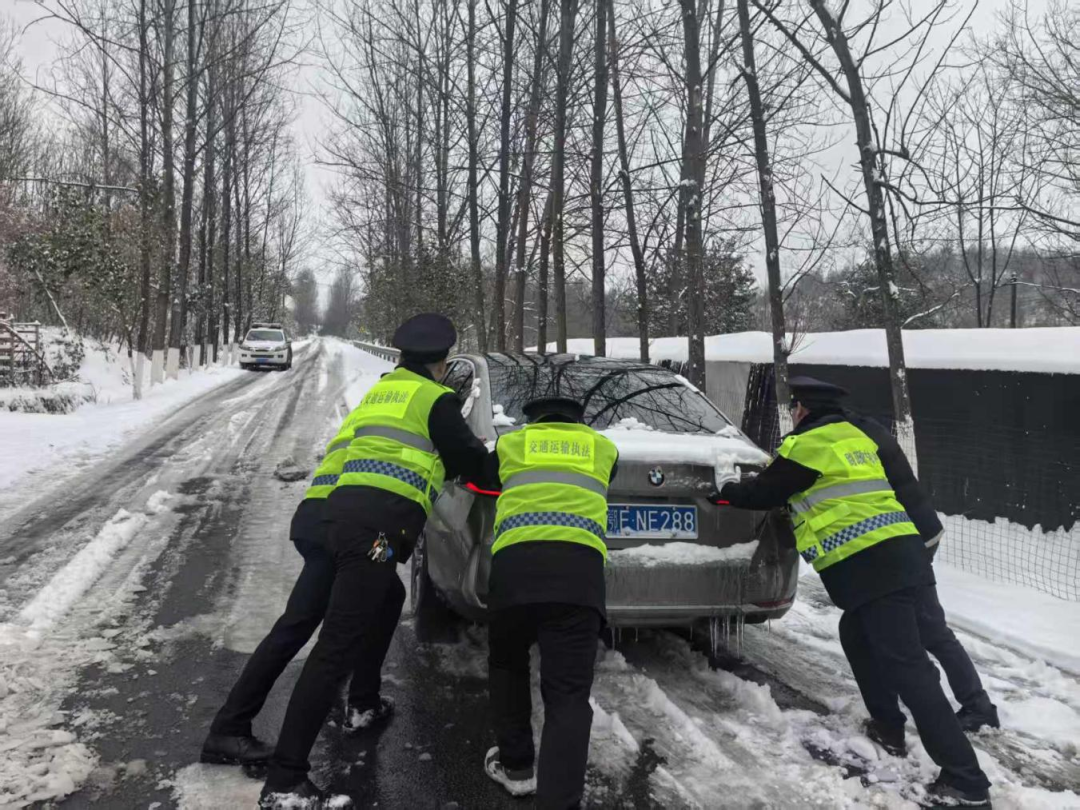 随州市交通运输综合执法支队坚守“执法有力度、服务有温度”理念,巡查中为故障滞留车辆提供检修帮助,送上热乎餐点,遇车辆打滑等突发情况,第一时间布设警示标识、开展救援处置,全程守护群众安全转移。