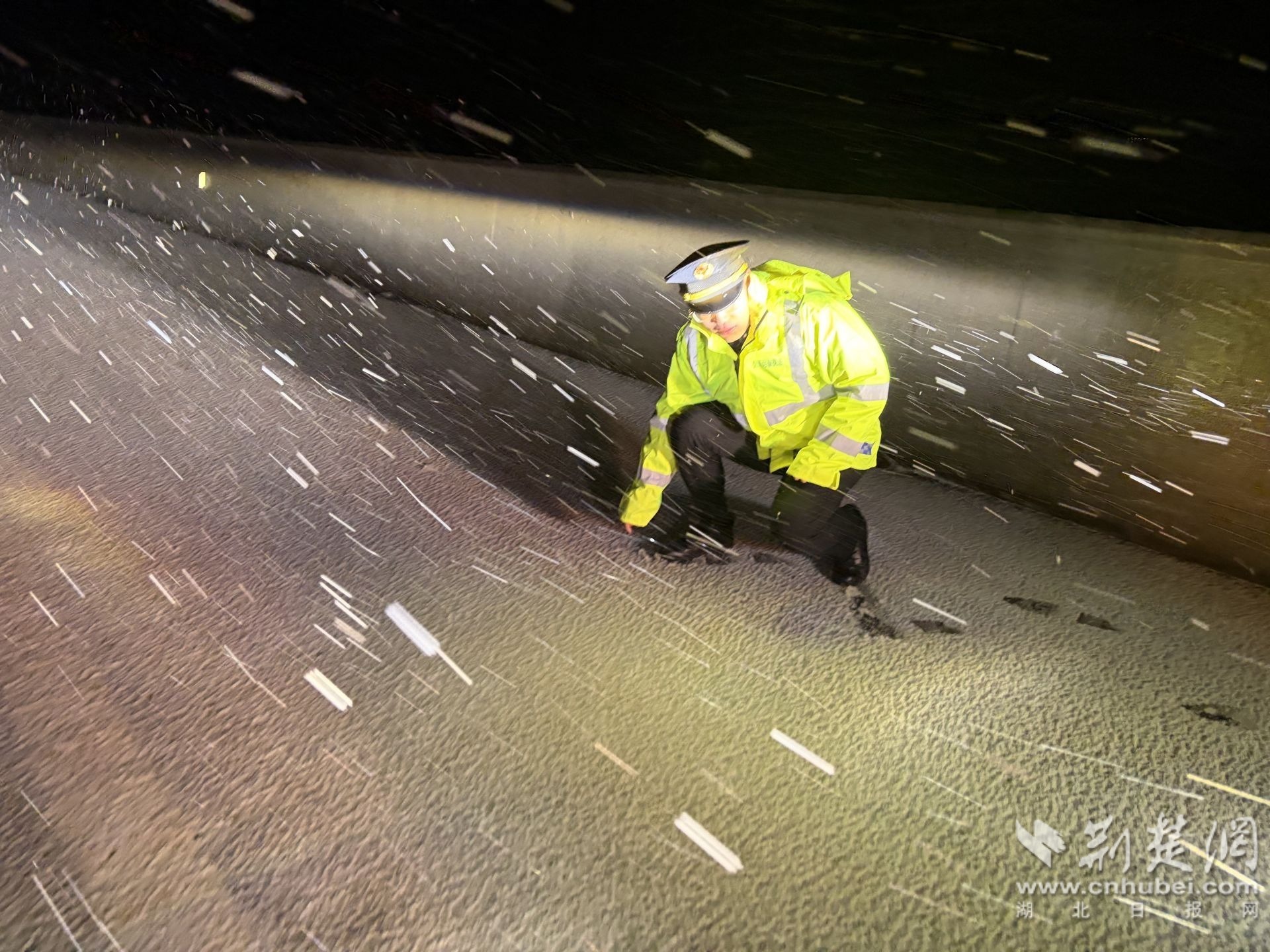 荆楚网(湖北日报网)讯(通讯员何祚美 陈露)2026年1月19日,首场雨雪伴随强冷空气席卷辖区高速,桥面、坡道快速积雪结冰,严重影响群众出行安全。面对这场开年风雪“大考”,省交通运输综合行政执法总队高速路政执法三、四支队闻雪而动、以雪为令,前置研判、联动协作,用坚守织密冬季高速安全保障防线。