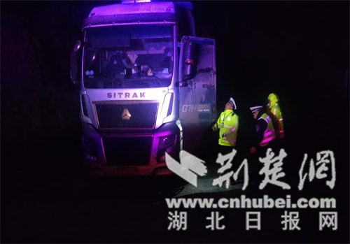 荆门交警帮助受困货车脱困。通讯员 供图