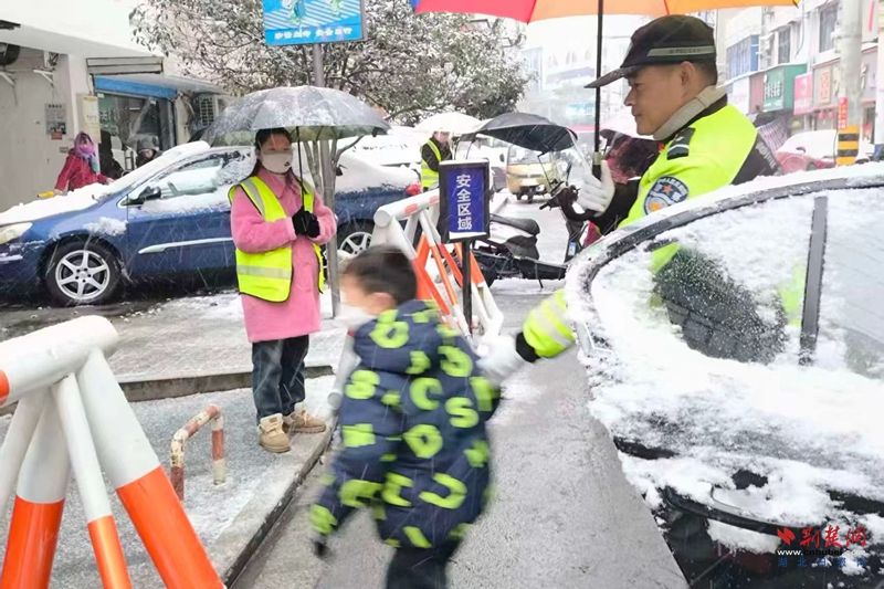 针对校园周边交通安保重点,交管大队城区中队与巡特警大队提前谋划、精准部署,在城区各中小学、幼儿园周边设立“护学岗”。民警冒雪坚守岗位,耐心劝导送学家长规范停放车辆,有序疏导交通流量,引导学生安全入校,用坚守为孩子们撑起“安全伞”,让家长们倍感安心。同时,执勤警力加强对重点路段、危险路段的值守管控,根据路面结冰情况及时采取临时交通管制措施,有效防范交通事故发生。