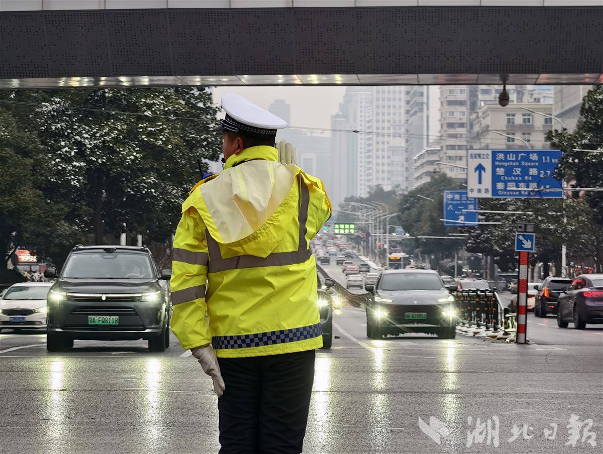 下午5时,武汉迎来雪后首个晚高峰。在中南路口,一位民警走向路中央,以标准手势引导车流,路面通行顺畅,未见拥堵。“上午雪中执勤时,还有司机摇下车窗,朝我们竖起大拇指。”民警田新发对记者说道。