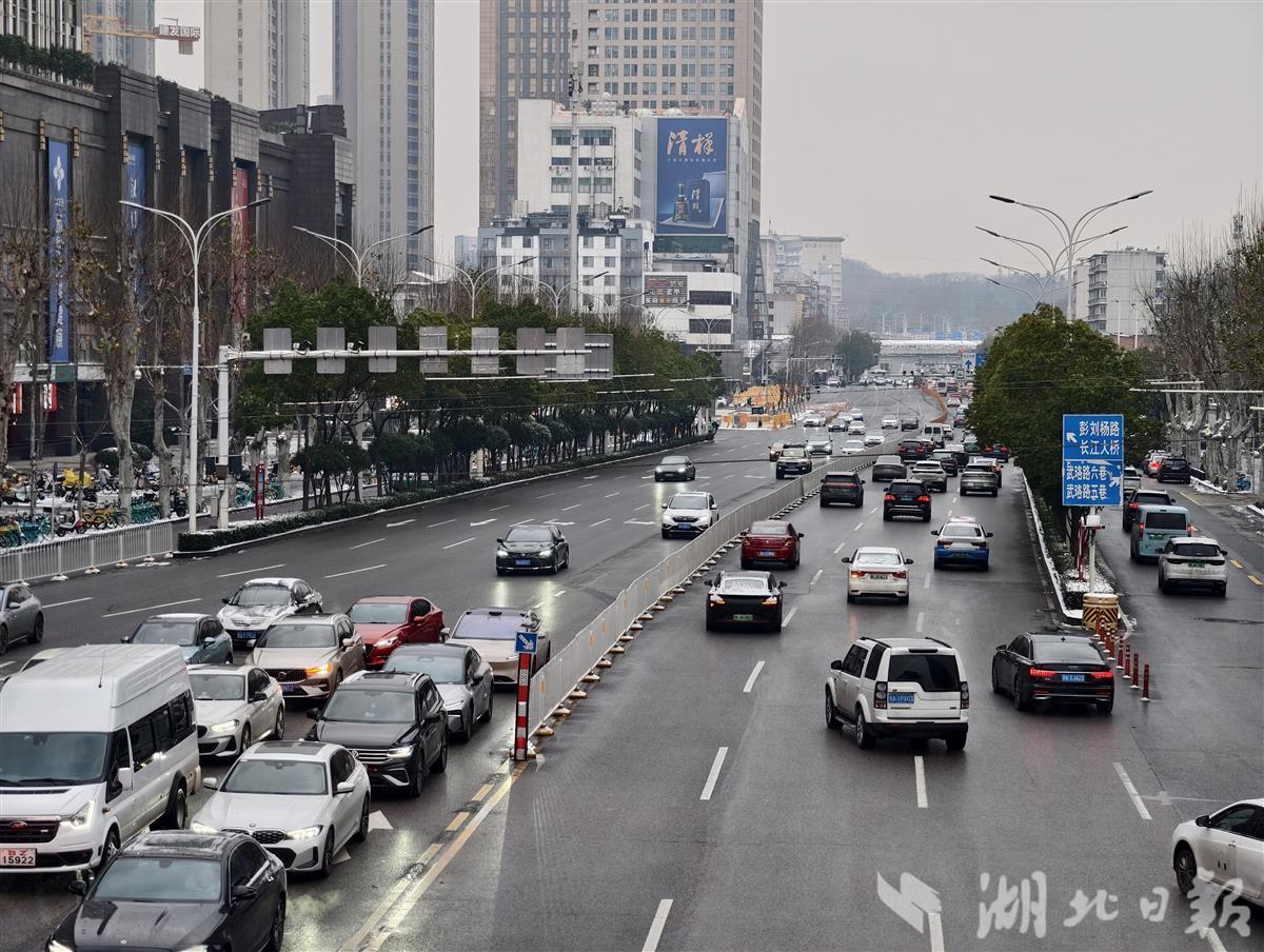 20日下午5点,中南路路口,武珞路上车流正常,道路无积雪