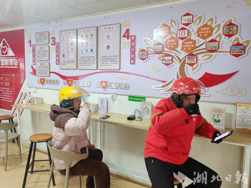 “自身安全要放第一位。”外卖骑手王师傅说,以前遇到极端天气,只能在路边硬扛,“现在知道社区有这么个驿站,能取暖、能接热水喝,心里踏实多了。”