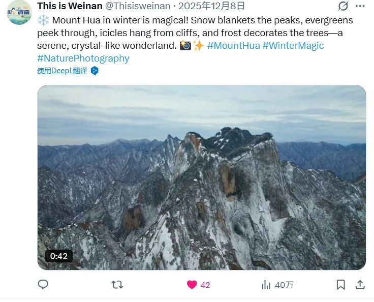 渭南的自然风光深受海外受众的喜爱