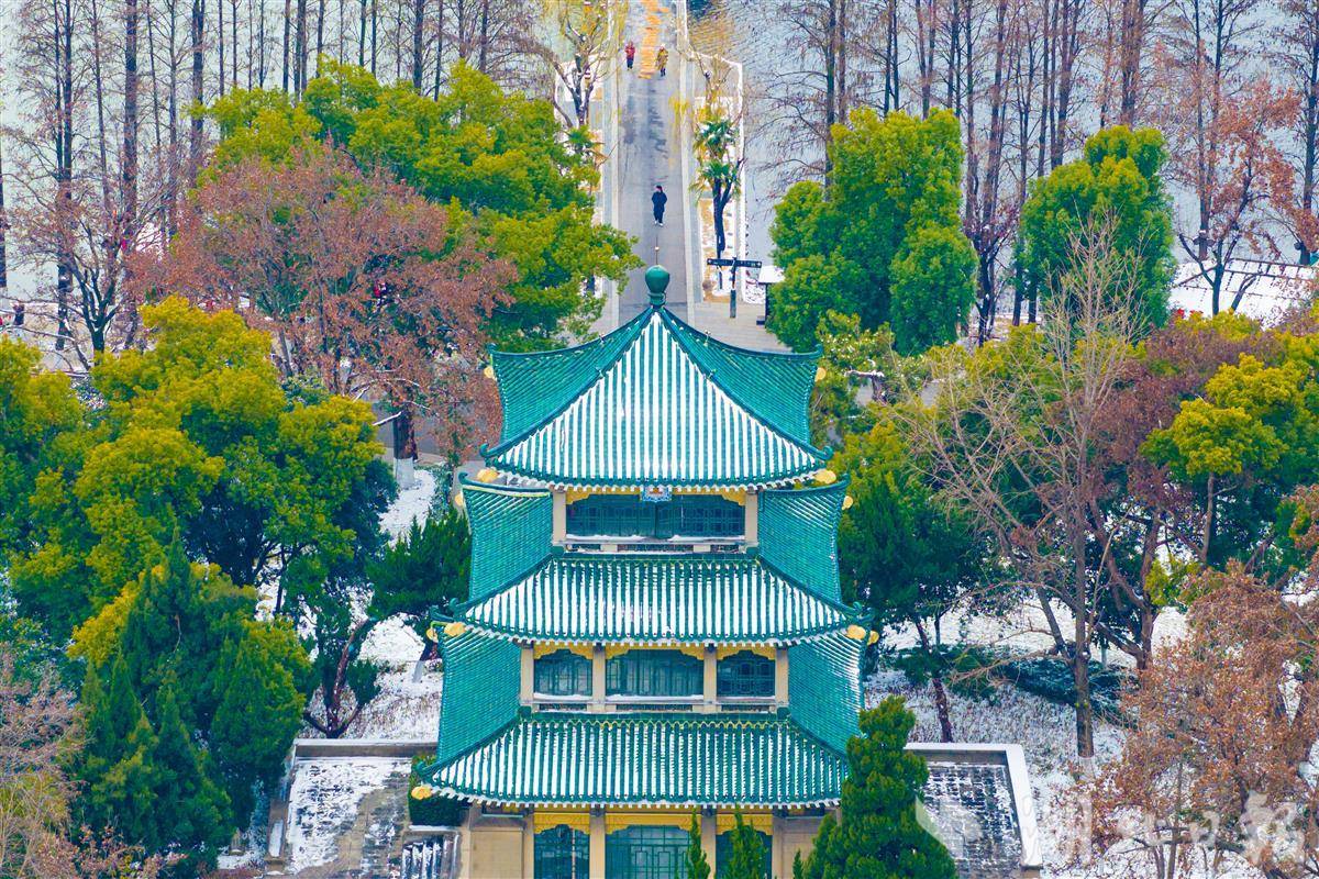 1月21日,武汉东湖行吟阁在雪景中别具韵味。(湖北日报全媒记者 任勇 摄)