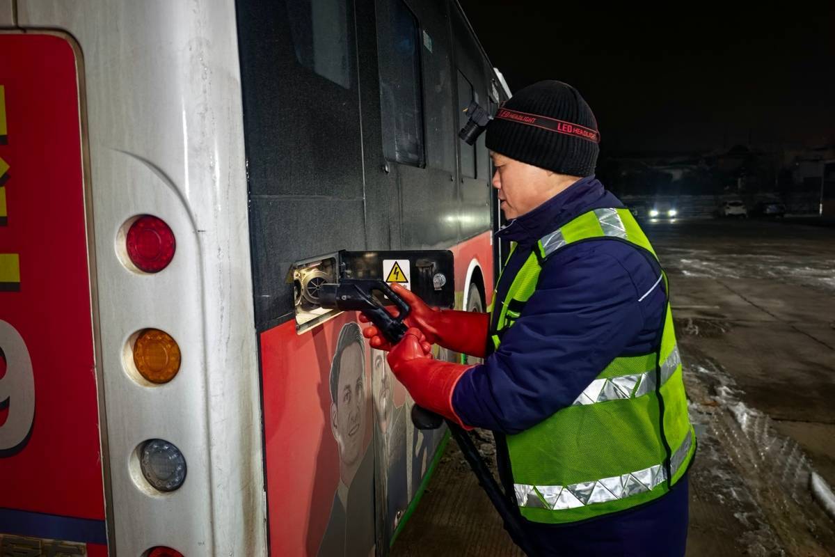 低温是新能源车充电的“天敌”,电池活性下降极易导致充电不畅。方承华对此格外警惕:每插好一把充电枪,他都紧盯着显示屏确认状态稳定;随后每隔半小时,他就对全场车辆进行一次巡检,频次比平日增加近一倍。“一辆车充不上电,就可能影响整条线路,耽误不得。”