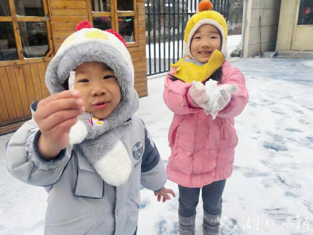 湖北日报讯(记者张倩倩、通讯员陈秋爽、李卉)1月20日,武汉迎来今冬首场降雪。青山区第三幼儿园吉林街园与青山区第二幼儿园北湖名居园,不约而同将课堂“搬”到了雪地里。孩子们在老师带领下踏上积雪、观察雪花、堆砌雪人,以沉浸式的体验感受冬日自然之美。