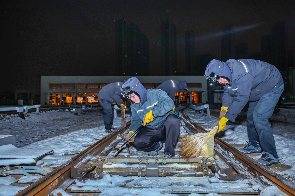 “平常,我们车辆段的道岔检修时间为中午和晚高峰。由于大雪天气,我们连续两天深夜申请了作业点,对道岔进行扫雪除冰和维护。”熊丰说,一夜之间城市披上银装素裹,景色很美,但对于我们来说,是一场保障市民出行的冬季“大考”。