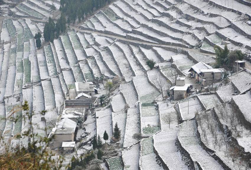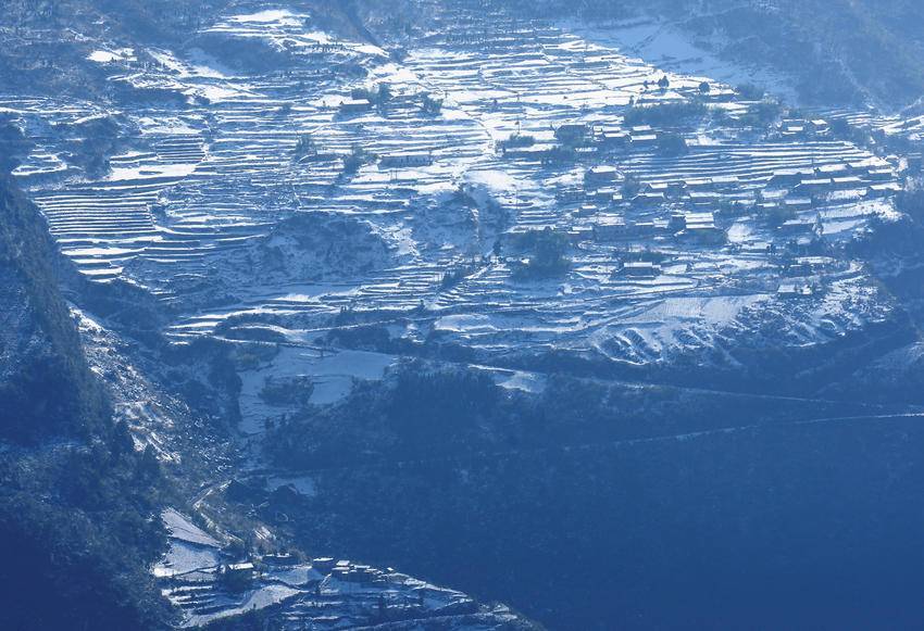1月20日大寒,一场瑞雪飘落在巴东县信陵镇中元子村,千亩梯田银装素裹,层次分明,沟壑清晰,宛如青春少女的曲线之美。