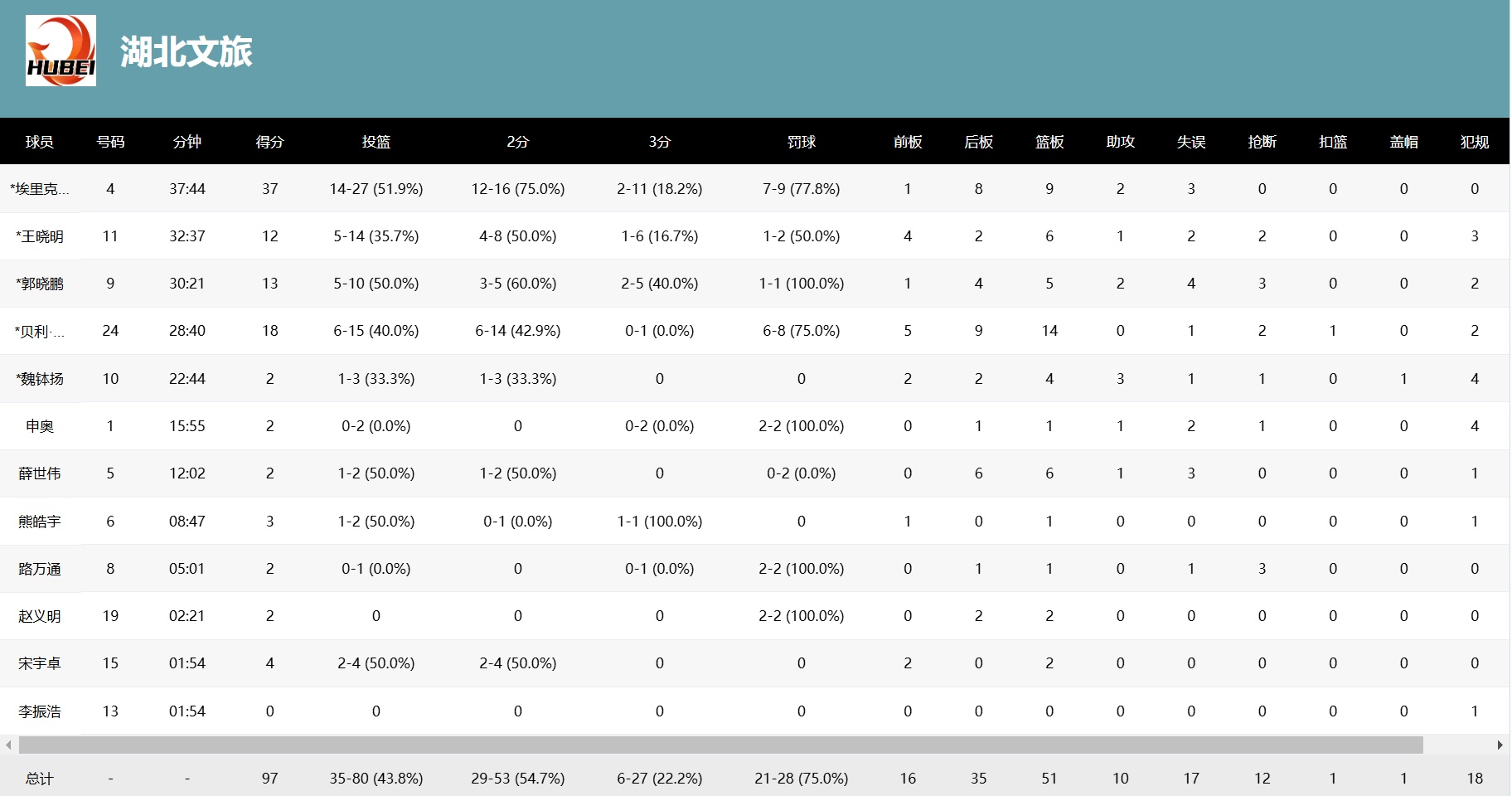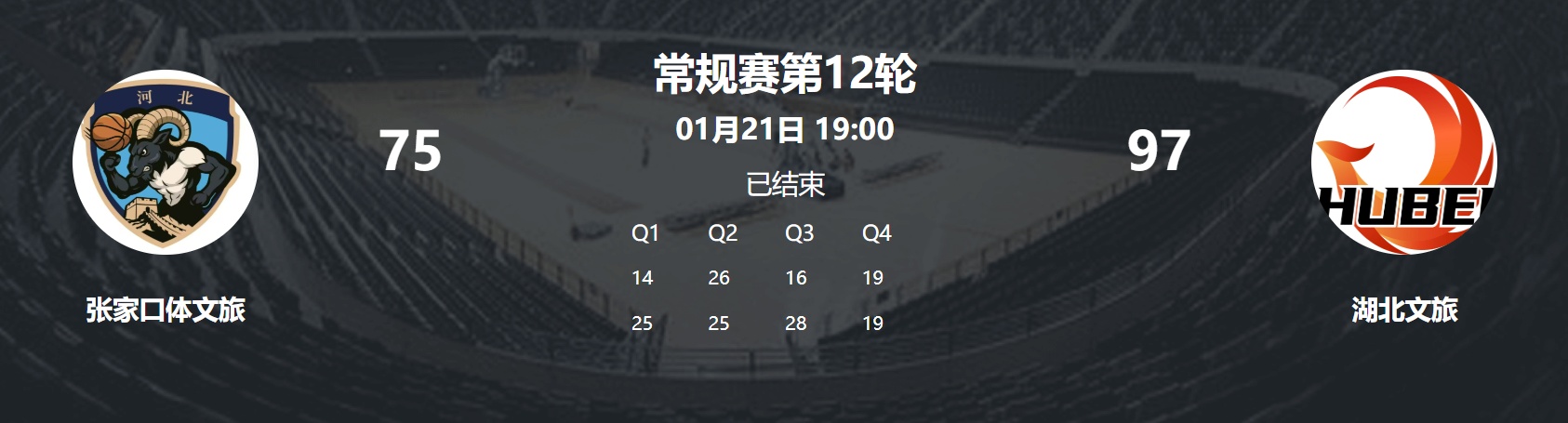 1月21日,湖北文旅男篮将士全体发力,在客场以97比75击败张家口体文旅,继赛季初的主场三连胜后又一次迎来三连胜。