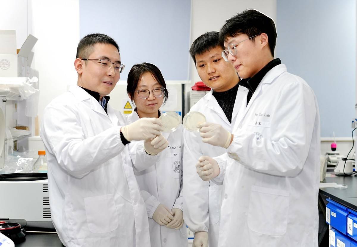 华中农大颜彦教授与学生们一起讨论(湖北日报通讯员匡敏摄)