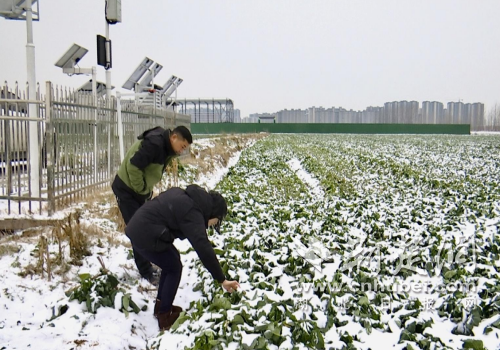 相较于露天种植的大田作物,温室作物的防寒管理需要更早、更精细的准备工作。在洋梓鲜采园的草莓大棚里,种植户郭学峰介绍了提前采取的系列措施:“在这次下雪之前,市农业农村局的专家们就过来指导我们做了准备,我们在大棚上预先撒盐防止积雪过厚、加盖了二层保温膜保证棚内基本温度、还增加了支撑立柱。”他特别提到,对草莓这类作物而言,在低温前浇一次水有助于提升地温,保护草莓根系不受冻害。这些提前落实的“组合拳”,构成了防冻抗雪的第一道防线。