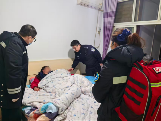 时间就是生命。民警迅速从报警信息中锁定求助人:辖区独居村民周某。在尝试与他取得联系时,电话那头传来的声音模糊不清、时断时续。“坚持住,我们马上到!”民警一边提高音量保持对话,一边展开紧急搜寻。他们迅速分成两组:一组留在电话跟前,不断和周某进行简单对话:“晚上吃饭了吗?屋里冷不冷?”尽量让他保持清醒;另一组则迅速联系村干部,核实位置,发动车辆赶往现场。