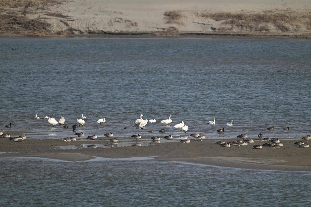 此次调查在长湖湿地市级自然保护区、潘集湖国家湿地公园、汉江沙洋段、黄荡湖共设立4个观测点,采用直接计数法,全面掌握越冬水鸟的种类、数量与栖息状况。除中华秋沙鸭和黑鹳外,还记录到花脸鸭、小天鹅、白额雁、斑头秋沙鸭等4种国家二级保护动物。